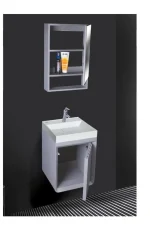 ماهور با طراحی مینیمال و کابین معلق، جلوهای سبک و مدرن به فضا میبخشد. آینه خمیده با نور LED یکنواخت، فضایی متفاوت و دلنشین ایجاد میکند. مناسب برای سرویسهای بهداشتی کوچک و متوسط.