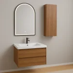 نوا با روکش سفید مات و طراحی ساده، فضایی روشن و دلنشین ایجاد میکند. آینه هوشمند با قاب فلزی و نور LED قابل کنترل، علاوه بر زیبایی، کاربرد بالایی دارد. بدنه مقاوم در برابر رطوبت و دارای کشوهای جادار.